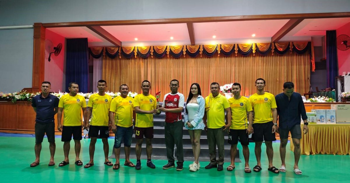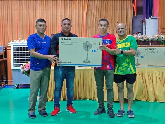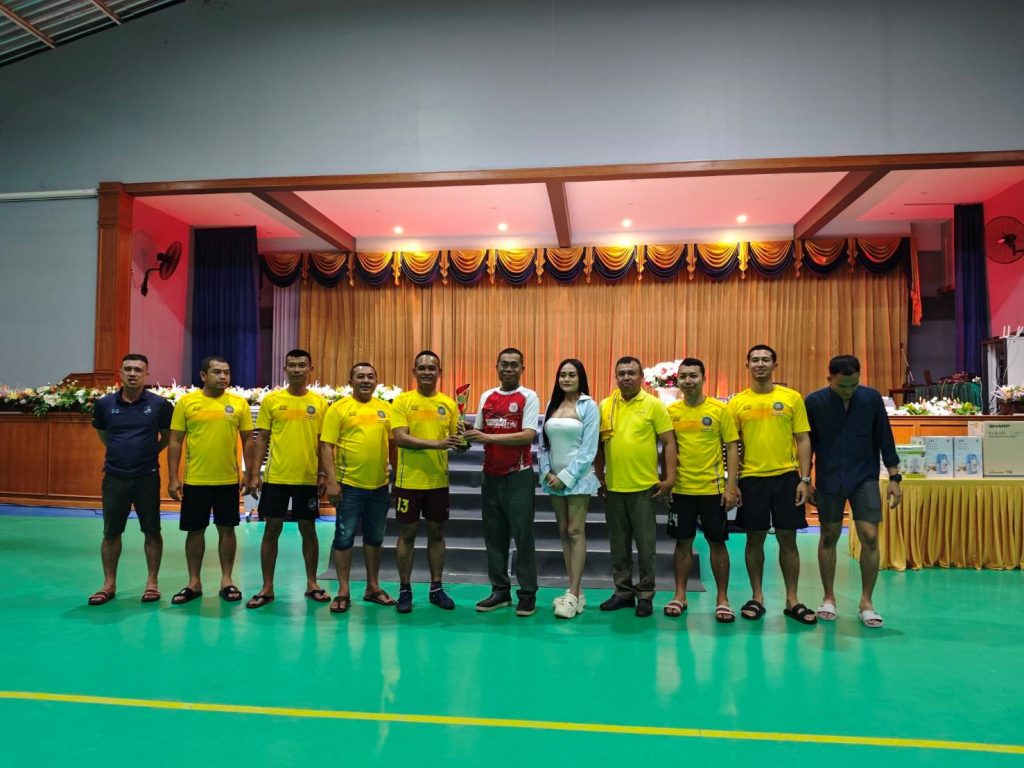 นายสมชาย สินมา ,นายกะชามาศ โพธิวิไล, นายพิชัย พรหมเลิศ กต.ตร.สภ.กาญจนดิษฐ์ พ.ต.อ.อรุณพงษ์ ภารพบ ผกก.สภ.กาญจนดิษฐ์ มอบของขวัญเนื่องในงานเลี้ยงพบปะสังสรรค์ปีใหม่